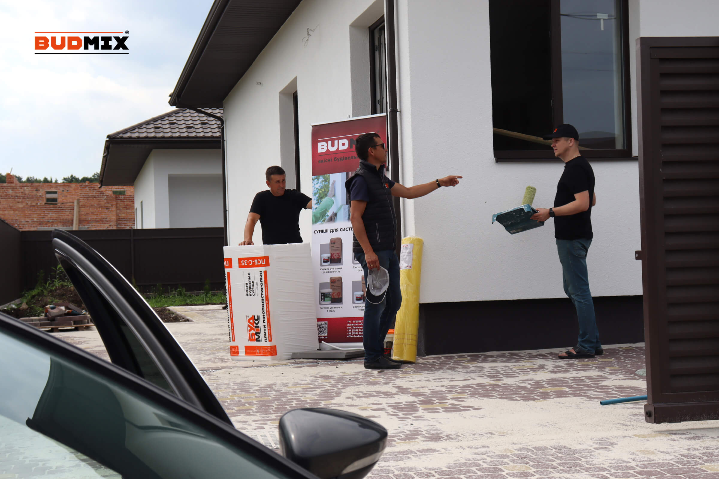 (на фото: роботи з утеплення фасадів матеріалами ТМ "БУДМІКС, у новозбудованих котеджах в с. Зимна Вода. Львівської області)